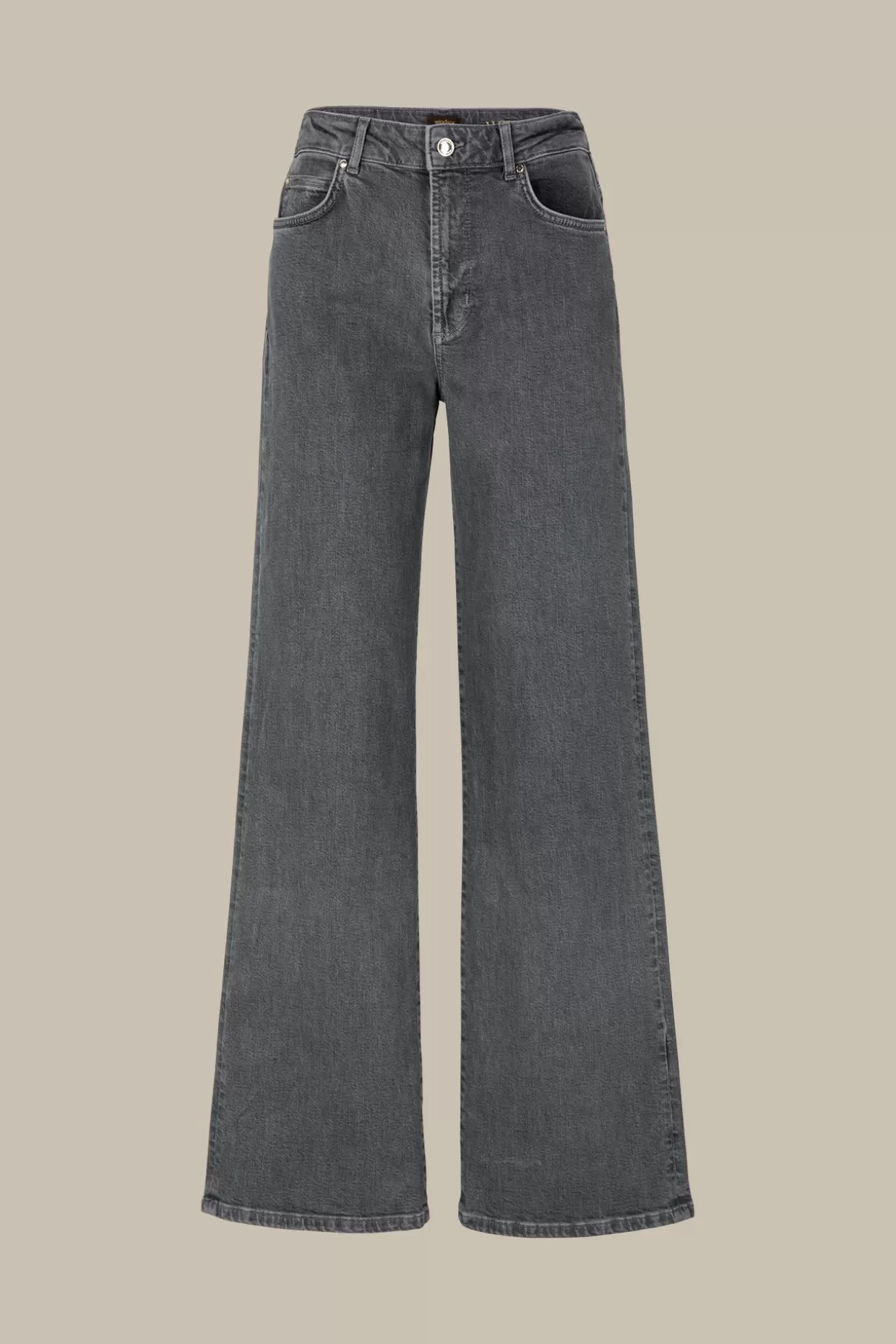 Als Essential Für Variable Looks Erweist Sich Die Jeans-Marlene-Hose In Grey Washed Aus Stretchiger Bio-Baumwolle. Das Design Aus Dem Hause Windsor Zeichnet Sich Durch Den Weiten Beinverlauf Und Den Leicht Höheren Bund Aus, Ergänzt Durch Den Five-Pocket-Stil. Einen Feinen Akzent Setzt Das Rückseitige Leder-Logo-Patch.